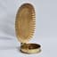 Add a touch of antique charm to your home with this stunning brass wall sconce, designed to cast a warm, inviting glow. The oval backplate features a beautifully textured finish that reflects candlelight with elegance, while the etched detailing along the edges enhances its vintage appeal. Finished in a radiant gold Oval, this candlestick holder stands as a striking statement piece on any wall. Simply hang it using the built-in hook or place it on the table, add your favorite candle, and enjoy the timeless beauty it brings to your space. Both practical and decorative, this sconce combines craftsmanship and character in one elegant design.