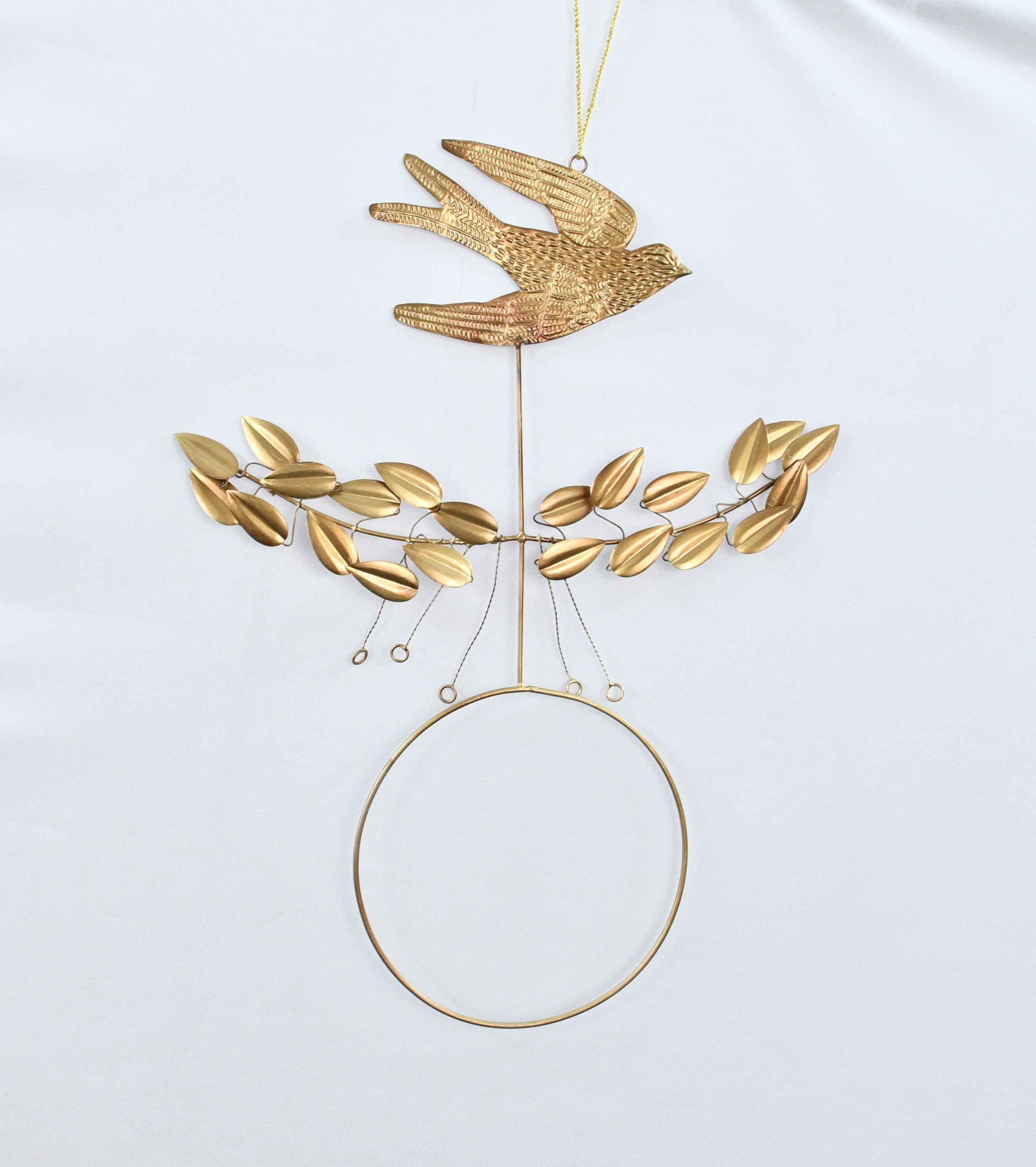 Bring a touch of refined elegance to any corner of your home with this handcrafted Wreath Finished in radiant gold, the design features a delicate bird perched on top and adjustable leaves for a sculptural, nature-inspired look. Style it your way—add your favourite ornaments to the ring and small loops, or complete it with a beautiful ribbon.