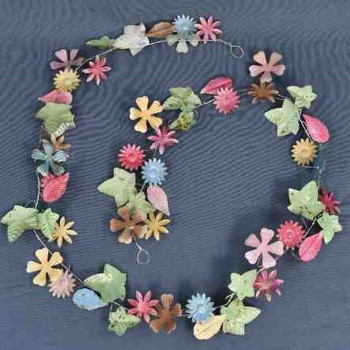 Add a vibrant touch to your decor with this exquisite floral garland, crafted from metal and hand-painted with a beautiful patina finish. Featuring colorful, handcrafted flowers, it’s perfect for brightening doorways, mantels, tables, or any space in need of a lively accent. Flexible wired stems make shaping and styling easy. A timeless, year-round piece that brings lasting natural beauty to your home.