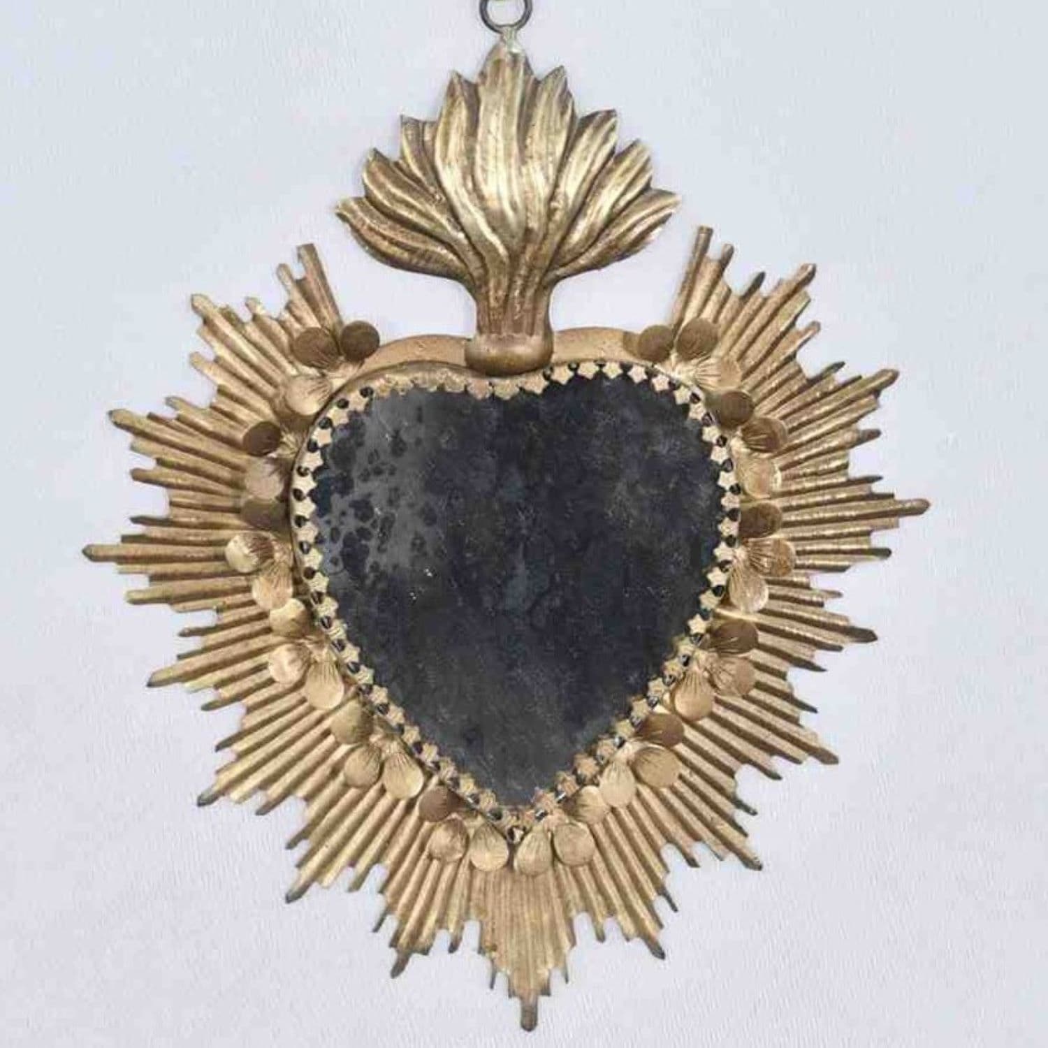 "Bring timeless elegance to your space with this luminous Sacred Heart mirror, finished in radiant antique gold. More than just a mirror, it’s a symbol of divine sophistication—blending vintage charm with a touch of modern flair. Featuring a striking heart motif and a distressed mirror, it exudes character and warmth with a subtle, timeworn appeal. Available in a variety of versatile styles, this mirror is designed to make a statement—whether hung in a bedroom, entryway, living room, or any space in need of light and beauty.