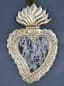 This stunning handcrafted ex-voto heart, featuring intricate ornamental borders and a crowned flame top The antique-style mirror center creates beautiful light reflection while the ornate framework displays exceptional craftsmanship.